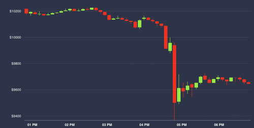 Bitcoin has dipped back below the psychological area of support near the $10,000 level amid a 20-minute bearish sell-off that took the markets by surprise.
