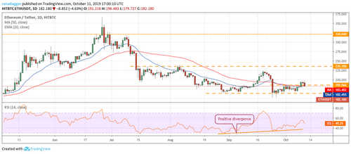 On the other hand, if the ETH/USD pair rebounds off the moving averages, the bulls will try to propel it above $200 once again. If successful, a rally to $235.70 is possible. For now, aggressive traders can keep the stops on the long position at $160. But if the price sustains below the moving averages, one might consider closing the positions without waiting for the stops to be hit.