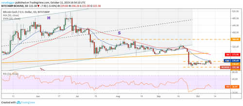 Bitcoin SV (BSV) turned down from the 20-day EMA on Oct. 10, which is a negative sign. The failure of the bulls to push the price above this level shows that investor sentiment about the altcoin remains negative. The bears will now try to sink the cryptocurrency below the immediate support of $78.506. If this support gives way, a retest of the recent lows of $66.666 will be on the cards.