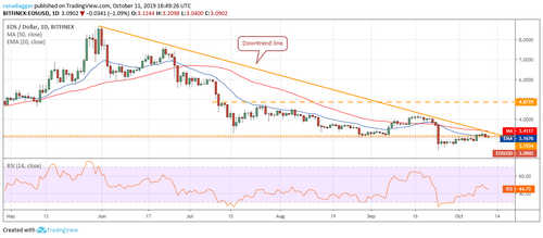 On the other hand, if the bulls can stall the decline close to $2.80 and propel the EOS/USD pair back above the downtrend line, it will signal an end of the downtrend. Above the 50-day SMA, a rally to $4.8719 is likely. Therefore, we retain the buy recommendation given in the previous analysis.