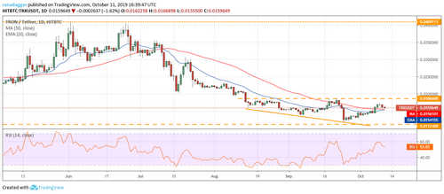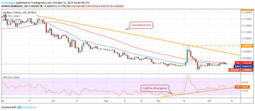Though Stellar (XLM) rose above the 50-day SMA on Oct. 9, the bulls could not build up on the gains. It quickly reversed direction on Oct. 10, which shows that the sentiment is to sell the rallies close to resistance levels.