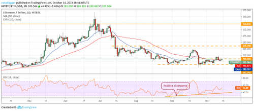 Conversely, if the bulls fail to scale the resistance zone, the bears will attempt to sink the ETH/USD pair to $164. A break below this support can drag the price to $152. Therefore, for now, aggressive traders can retain the stops on their long position at $160. We will suggest trailing the stops to $175 after the price rises above $200.