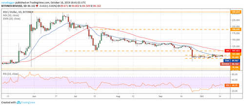 Bitcoin SV (BSV) broke out of the overhead resistance zone of $90.40-$96.77 earlier during the day but could not sustain it. The price has re-entered the range, which shows selling at higher levels.