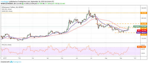 Ether (ETH) broke out of the 50-day SMA on Sept. 16 and followed it up with further gains that have propelled it above $203.78. This is a positive sign and indicates a change in trend. The next level to watch is $235.70, above which it is likely to pick up momentum.