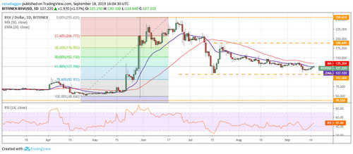 Bitcoin SV (BSV) has pulled back to the 20-day EMA, above which it can move up to the 50-day SMA. This shows that bulls are using dips to $107 to buy. However, the pullback lacks strength, hence, we are not proposing a trade at current levels.