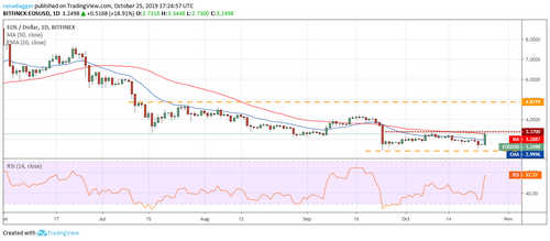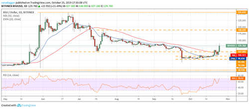 Bitcoin SV (BSV) found support at the 20-day EMA on Oct. 23, which is a positive sign. The subsequent bounce has been strong and it picked up momentum after breaking out of the overhead resistance zone at $107 to $115.170.