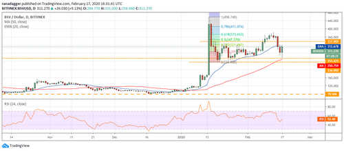 Bitcoin SV (BSV) dipped below the critical support at $337.80 on Feb. 15. This triggered further selling that dragged the price to the 50-day SMA at $243. Currently, the price has bounced off sharply from the 50-day SMA.