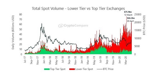 Trading activity is also up. CryptoCompare released data this week showing that April 30 saw the second highest trading volumes on record: