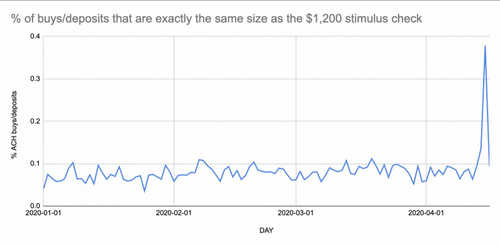 Brian Armstrong, CEO of Coinbase, shared a cryptic chart earlier in April indicating a spike in the number of Coinbase customers who deposit and execute buy orders for $1,200, the same amount in the stimulus checks sent by the Internal Revenue Service to middle- and lower-income adults. Coinbase is the largest U.S.-based cryptocurrency exchange by traded volume, according to data aggregator CoinGecko.