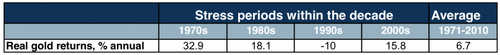 The real or inflation-adjusted price of gold rose an average 33 percent per annum in the 1970s, 18 percent in 1980s and 15.8 percent in 2000.