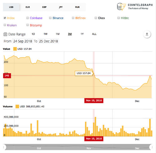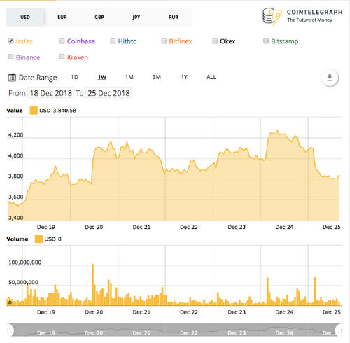 Largest cryptocurrency Bitcoin has plummeted over 9 percent on the day, and is trading at $3,812 as of press time, according to Cointelegraph’s Bitcoin Price Index. After bullish growth yesterday, Christmas eve, to break over $4,236, the top coin has been trading as low as $3,755 in the trading hours before press time — an around $500 drop.