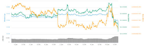 At press time, Bitcoin is down over 9 percent on the day, trading at around $3,661. Looking at its weekly chart, the current price is lower than $3,888, the price of BTC one week ago. The current Bitcoin value is also substantially lower than $4,108, its mid-week high reported on Tuesday.