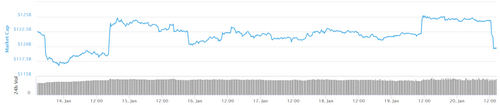 The combined market capitalization of all cryptocurrencies — currently equivalent to about $119.7 billion — is lower than $122.5 billion, the value it reported one week ago.