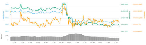 At press time, Bitcoin is down over 2 percent on the day, trading at around $3,568. Looking at its weekly chart, the current price is lower than the intra-week high of $4,109 — registered on Jan. 8 — and is also lower than $3,869, which is the value of one bitcoin last Sunday.