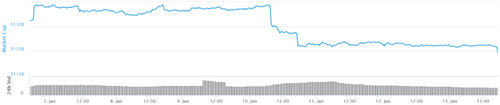 The combined market capitalization of all cryptocurrencies — currently equivalent to about $119.6 billion — is lower than $132.3 billion, the value it reported one week ago. The current value is also notably lower than the intra-week high of $138.7 billion reported on Jan. 6.