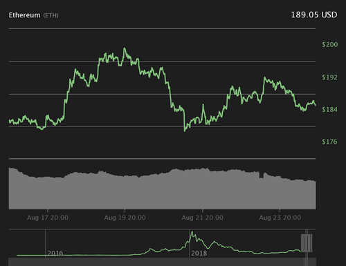 Ether (ETH), the second-largest cryptocurrency by market cap, is down 2.3% to trade at nearly $190 at press time. The top altcoin is up by roughly 2.9% over the past 7 days.