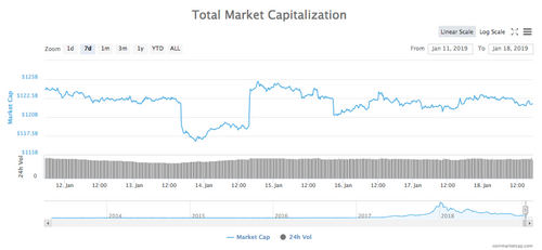 7-day chart of total market capitalization of all cryptocurrencies.
