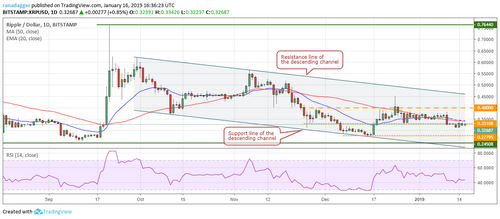 If successful, the XRP/USD pair can rally to the overhead resistance of $0.4, and above it to the resistance line of the descending channel. A break out of the channel will signal the probability of a change in trend.