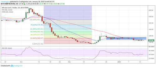 Bitcoin Cash (BCH) has been trading in a tight range since it broke down of the support at $141. While the bears have failed to sink it towards the next support at $100, the bulls have failed to push it back above $141.