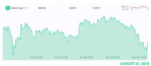 Bitcoin Cash (BCH) still holds the fourth position and each BCH is trading for $299. BCH has an overall market cap of around $5.3 billion and about $1.39 billion in trade volumes. Today BCH is down more than 5% and over 8% over the last seven days. Daily transactions (txn) this Wednesday have been around 43,000 and BCH has had an average of about 40K txn every day since April. BCH is the sixth most traded digital asset on August 21, just below EOS and above XRP. Tether (USDT) captures around 58% of all BCH trades which is followed by BTC (22.5%), USD (8.4%), ETH (6%), and KRW (2.5%).
