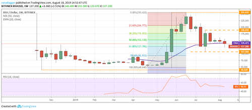 The Bitcoin SV pair has been giving up ground in the past few weeks. The bulls are struggling to sustain the bounce, which shows lack of demand at higher levels. The pair has dipped below the 20-week EMA, which has flattened out and the RSI is also close to the midpoint. This suggests a range-bound action for the next few weeks. Support for the range is at $107 while resistance is at $188.69.