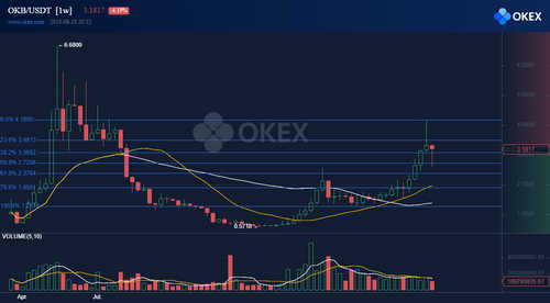 OKB, the native token of the world-leading exchange OKEx has been on a stellar run in 2019. Its rally from lows of $0.5718 to highs of $4.18 has offered a handsome return of 631% to its investors. That has easily outperformed Bitcoin’s 331.8% rally.