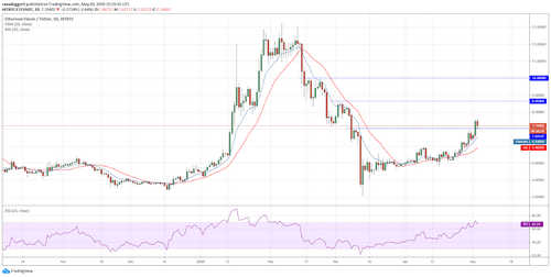 Currently, the bears are mounting a stiff resistance close to $9,200. If the bulls can propel the price above this resistance, the momentum is likely to pick up and a quick move to $10,000 is possible.