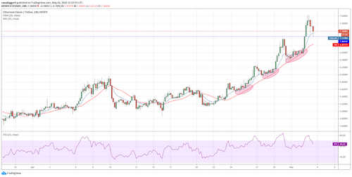 However, the bears are unlikely to give up easily. They are attempting to stall the up move closer to $7.60. Therefore, the price might consolidate near $7.05 levels for some time. Traders can wait for the pair to break above $7.63 before buying. The positions can be closed if the price sustains below the 20-MA.