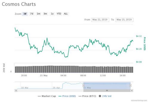 Cosmos 24-hour price chart.