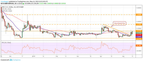 The levels to watch on the upside are $0.45 and above it $0.60, with a minor resistance at $0.5650. Contrary to our expectation, if the XRP/USD pair fails to break out and sustain above $0.33108, it will remain range bound between $0.27795 and $0.33108. The trend will turn negative on a breakdown below $0.27795.