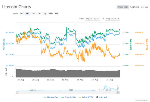 Litecoin’s 7-day price chart.