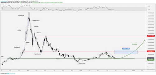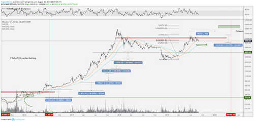 A common discussion lately on Crypto Twitter suggests that there’s a confluence between the so-called Bitcoin price “bubble” top of 2017 and the last top at the end of July at $13,935. In a sense, parabolic movements tend to repeat the same stages over and over again.