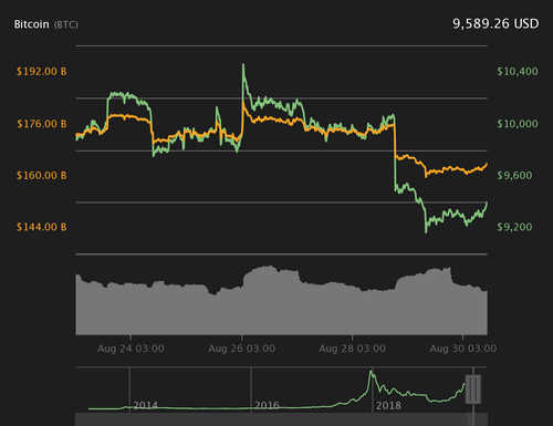 Bitcoin price climbed back above $9,500 on Aug. 30 as the largest cryptocurrency continued to grapple with the fallout of this week’s sudden losses.