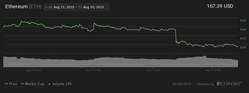 Ether (ETH), the second cryptocurrency by market cap and the top altcoin, is down 0.7% to trade at $169 at press time. Over the 7 days period, the altcoin is down 13%. On Aug. 20, crypto investor and Placeholder partner Chris Burniske argued that Ether has been experiencing its first mainstream bear market.
