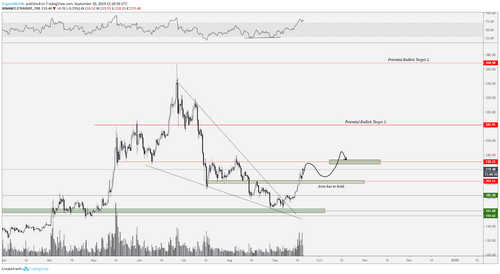 A break below $150-170 would turn the market into more bearish territory. However, the latest bounce reintroduces some bullish sentiment as the $150-170 area has flipped into support.