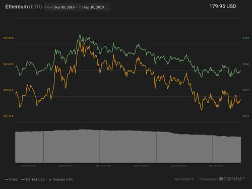 The number one altcoin, Ether (ETH), is showing similar trading trends today and is showing little to no price movement. The coin is currently trading at $180.6, down 0.6% on the day.