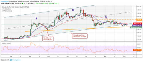 If the BCH/USD pair breaks out of $360, it is likely to rise to $515.35. However, if it turns down from $360, it will remain range-bound for a few days. Our bullish view will be invalidated if the pair turns down and plummets below the neckline of the head-and-shoulders pattern. Traders can buy 50% of the desired allocation on a breakout and close (UTC time) above the 50-day SMA with a stop loss of $270.