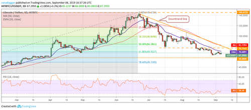 However, we will recommend a long position on the LTC/USD pair only after we spot a new buy setup because the downsloping moving averages and RSI in negative zone suggest that bears still hold the advantage.