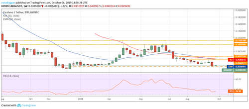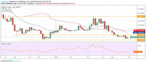 The TRX/USD pair declined close to the yearly low of $0.01124 the week before. This is a negative sign as it shows that bears continue to sell on minor rallies. If the current pullback fails to scale above the overhead resistance of $0.01774, we anticipate another attempt by the bears to sink the pair to new lows.