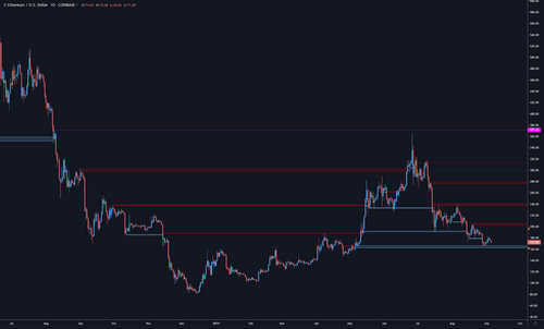 Therefore, one could attribute this level to the beginning of what was a pretty big shift in market structure for Ether. Getting back down to this level isn’t particularly worrisome, however.