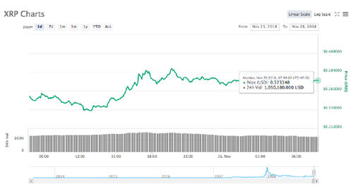 Ripple (XRP), the second cryptocurrency by market cap, is seeing more gains, up 6.7 percent over the 24 hour period and trading at $0.37 at press time.