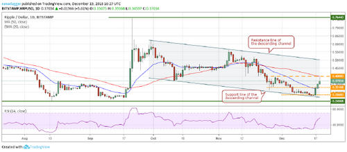 Conversely, if the XRP/USD pair turns down from $0.4, it can correct to $0.33108. Both moving averages are flattening out and the RSI has jumped into the positive territory, which indicates a trend change. We shall get a better idea in the next 3–4 days.