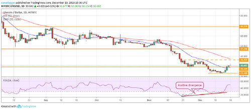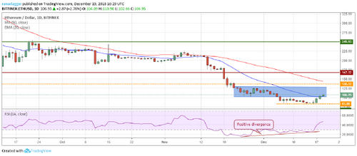 The ETH/USD pair can now move up to the top of the range at $130. The $130–$136.12 zone is likely to act as a stiff resistance. Short-term traders can book partial profits at these levels and trail the stops on the remaining position higher.