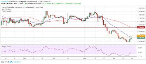 Stellar has reached the critical overhead resistance of $0.13427050 from where it had turned down on Dec. 8. If the bears defend the level again, we might witness a minor correction or a consolidation.