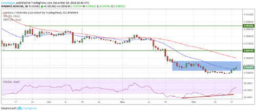 Cardano has risen above the 20-day EMA and has entered into the previous range of $0.033065–$0.045516. The 20-day EMA is flattening and the RSI is close to the neutral zone. This suggests a likely consolidation in the short-term.
