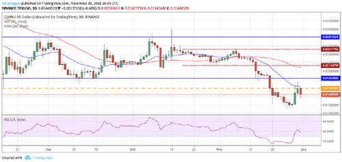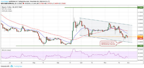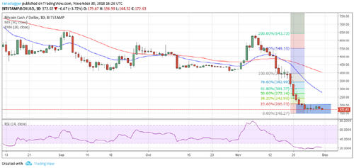 Contrary to our opinion, the pullback in Bitcoin did not even reach the 38.2 percent Fibonacci retracement level of $4,712.89. It turned down from $4,471.1 on November 29. This shows that the bears are unwilling to wait for higher levels to sell.