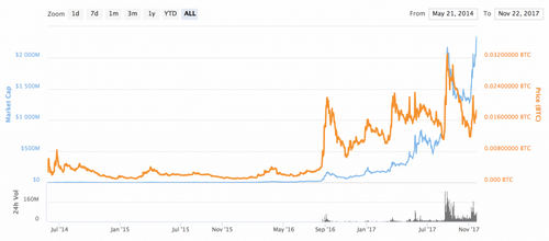 After Alphabay’s dismantling, when it emerged that investigators could only quantify an “unknown amount of Monero” a new meme was born – Should Have Used Monero. This was further heightened after a number of arrests was achieved by following bitcoin transactions through the blockchain. That meme may require a light edit however from SHUM to SHHM – Should Have Hodled Monero. XMR is one of the few altcoins to have largely kept pace – and often exceeded – bitcoin’s meteoric rise this year. It’s currently sitting at $150 a coin and $200 looks well within its reach.