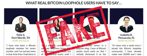 The Bitcoin Loophole website displays a bunch of testimonials supposedly from people in the U.S. despite the scheme declaring (after signing up and logging in) that it does not accept U.S. customers.