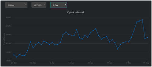 Total liquidations over the past 24 hours stand at $90 million, with longs accounting for over $63 million or 70% and shorts $26 million or 30%. Open interest in BitMEX’s XBT/USD is at $484 million, with current liquidations at close to $1 million (99%) for longs and $10.3k (1%) for shorts.