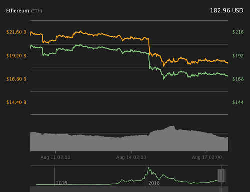 The second-largest cryptocurrency by market cap, Ether (ETH) started the day at $182.96.